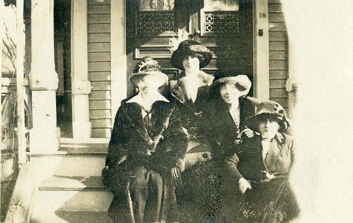 The field hockey photo is on the top of the album page, with the three others below, reading left to right.